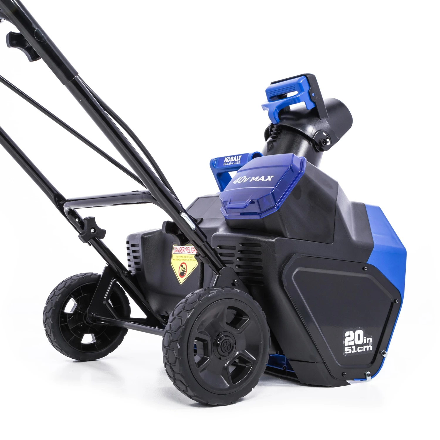 - Kobalt 40V snow thrower with 20-in width easily clears heavy snow from driveways and walkways