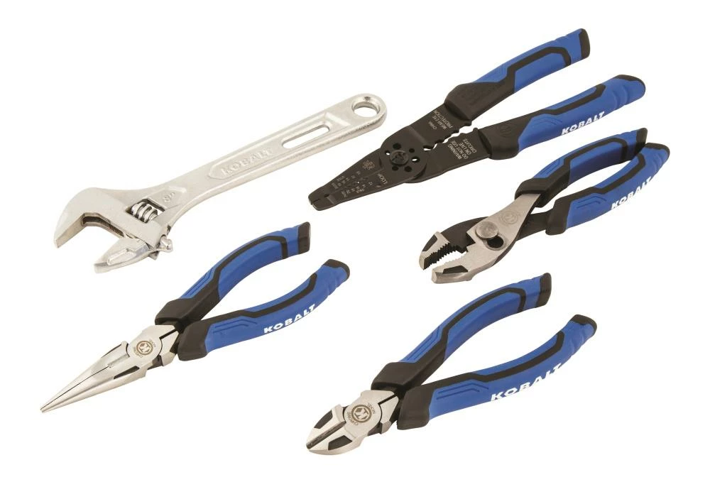 - Pliers include 8-in long nose, 6-in slip joint and 6-in diagonal