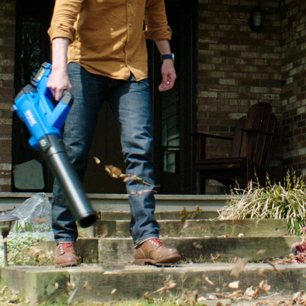 The Kobalt 24-Volt Max Leaf Blower and String Trimmer Combo Kit helps keep your yard neat and tidy. The string trimmer’s 12 inch cutting swath and dual line feed increase cutting efficiency, while it’s bump head makes it easy to advance line for continuous use. The leaf blower’s turbine fan produces 410 CFM to quickly corral fallen and debris so you don’t have to rake, and it’s removable tube makes storage convenient. The interchangeable 24-volt battery offers lasting power and run time, and high efficiency brushless motors offer durability to easily tackle outdoor chores. Variable-speed triggers on both tools allow you to set the power to suit the task for maximum control. Yard work just got easier with the Kobalt Leaf Blower and String Trimmer Combo Kit.