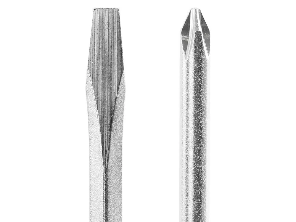 The Kobalt® 12 piece screwdriver set features CR-V steel shafts for strength and durability and a precision ground sandblasted tip for accurate fit. This screwdriver set comes with the highest quality acetate handles for long lasting use and extra gripping power. Traditional quality and dependability.