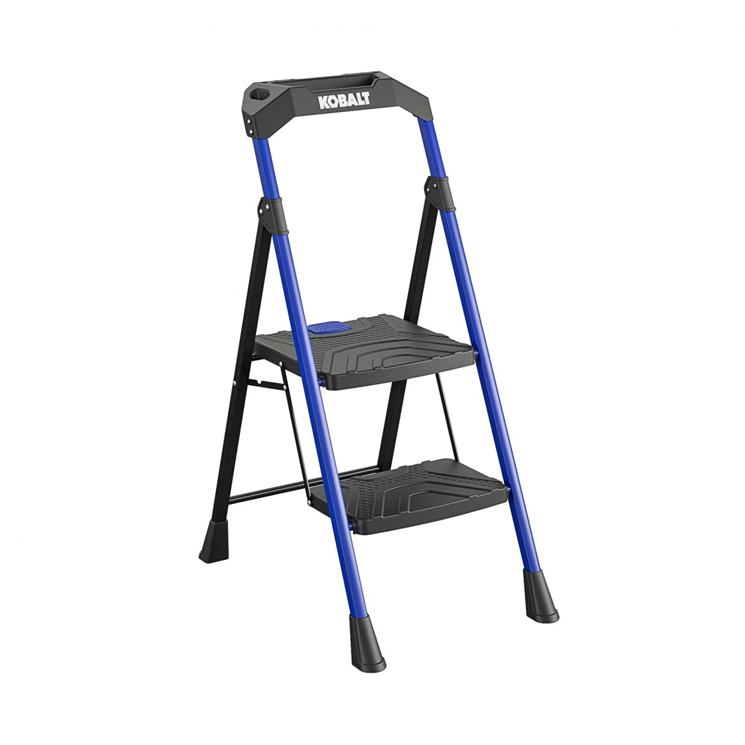 Kobalt Step Stools 2-Step 300-lb Capacity Black Steel Foldable Step Stool