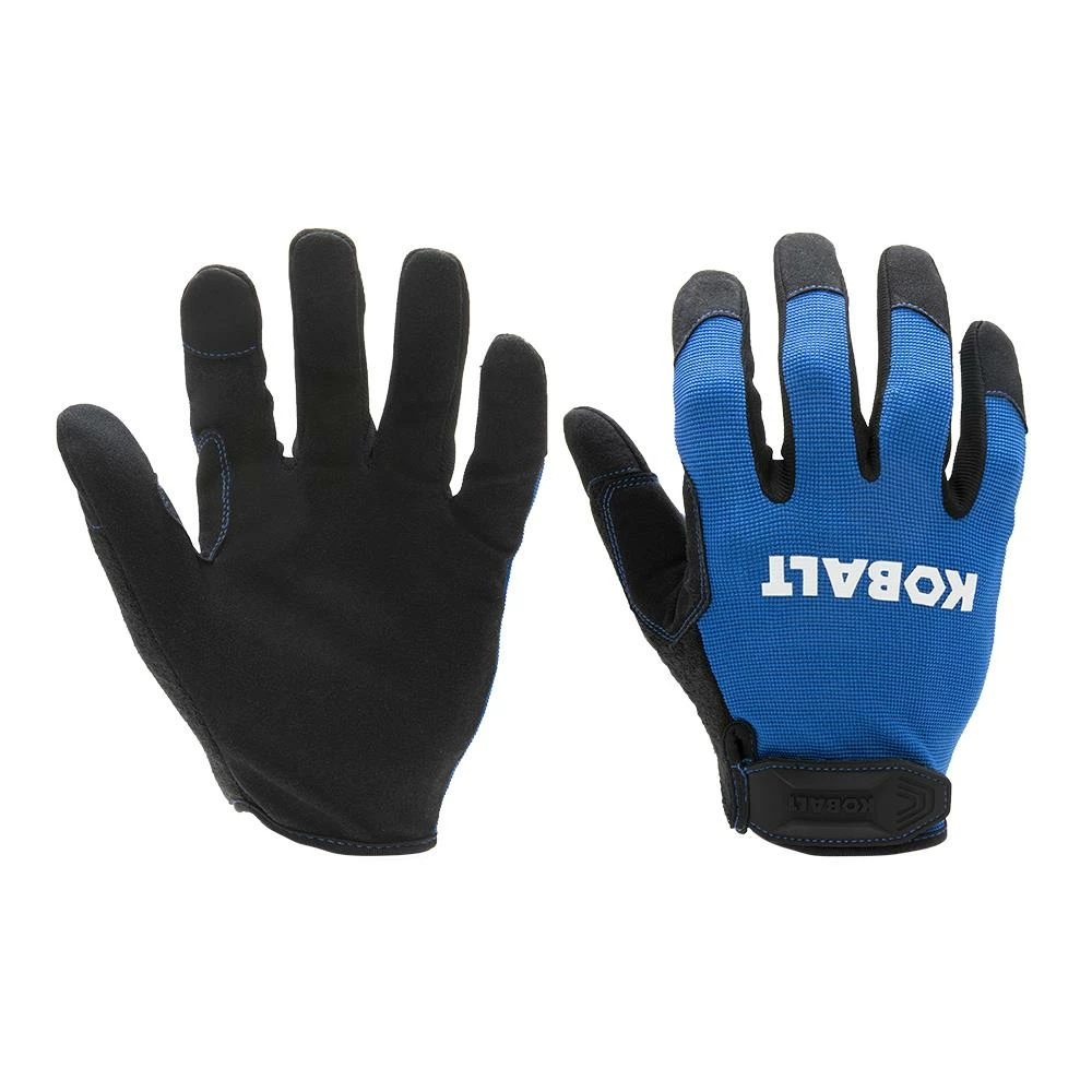 Protect your hands during busy automotive repair, construction and handyman projects with this pair of Kobalt touchscreen-capable gloves. These utility gloves have a seamless palm design that maximizes manual dexterity and prevents snags during use. An added patch of material along the thumb saddle reinforces that often abraded area against tearing and premature wear. To keep you connected, these gloves feature touch-screen compatible fingertips for easy access of tablets, phones and other electronic devices. The adjustable wrist closure ensures a snug, comfortable fit and keeps out dirt, debris and other irritants during lengthy jobs. When the heat is on and the sweat begins to drip, a terry cloth section along the back of the thumb helps you wipe away moisture and keep it out of your eyes. The back of the glove is sewn with a breathable cotton/poly blend to help keep hands comfortable during long hours working.