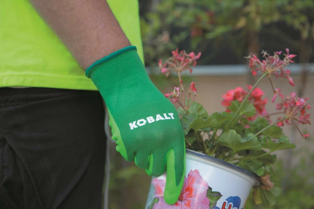 Protect your hands when gardening and doing other handyman projects around the house with this pair of Kobalt foam-dipped rayon (or viscose) made from bamboo fiber gloves. These comfortable, seamless knit gloves are made with a hi-viz green nitrile foam-dipped palm that provides excellent grip in both wet or dry conditions. The fabric is made from bamboo fiber that possesses natural anti-microbial properties that eliminates odor causing bacteria. The wrist closure is made with stretchable elastic to ensure a snug, comfortable fit that keeps out dirt, debris and other irritants during lengthy jobs. The entire glove is made from latex, making it allergen-free and wearable by those with sensitive skin.